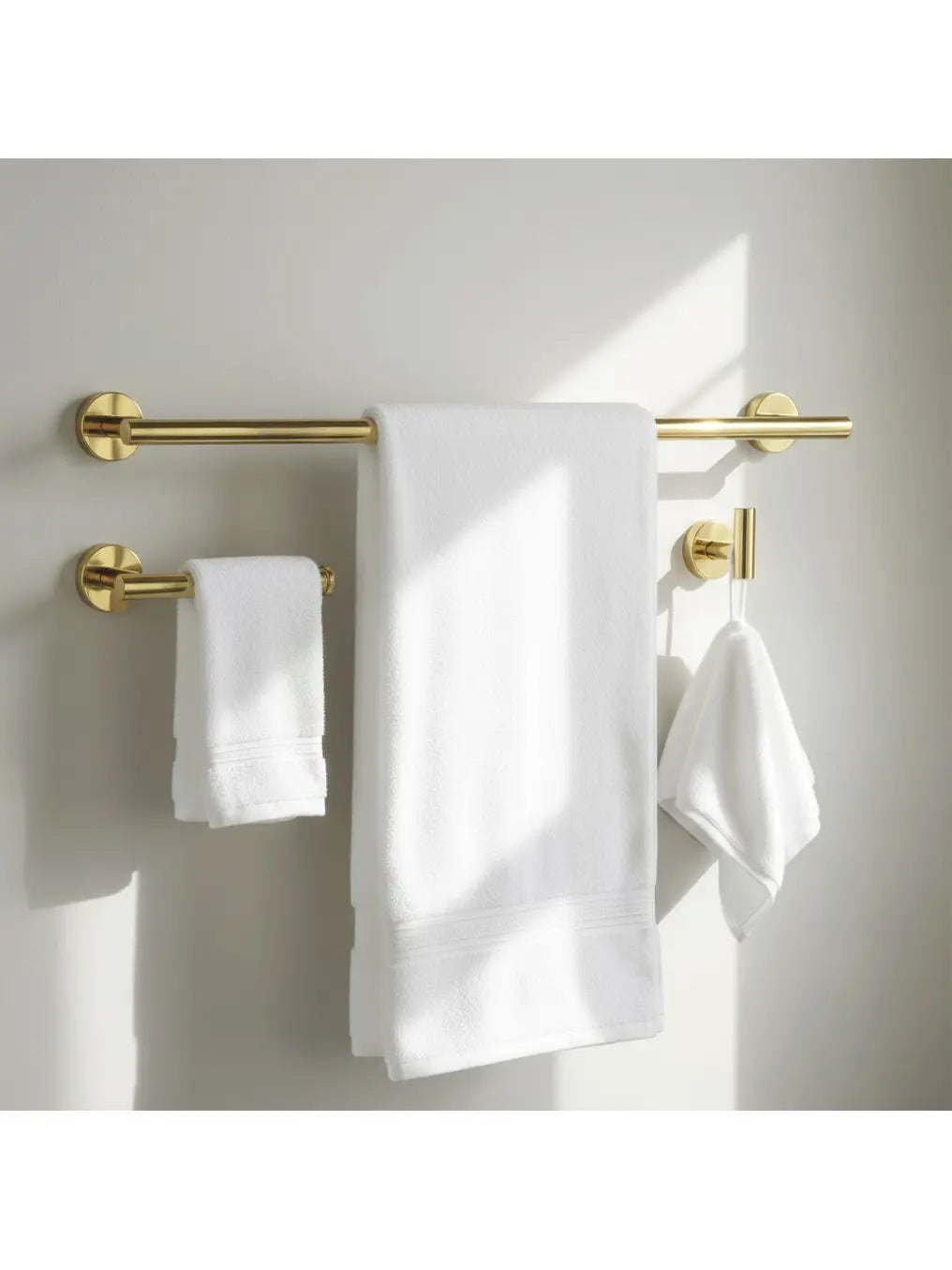 Gefertigt aus hochwertigem Edelstahl mit glänzend vergoldeter Oberfläche, überzeugt das Set durch seine edle Optik und Langlebigkeit. Die verdeckte Wandmontage sorgt für ein harmonisches Gesamtbild und eine saubere Ästhetik.