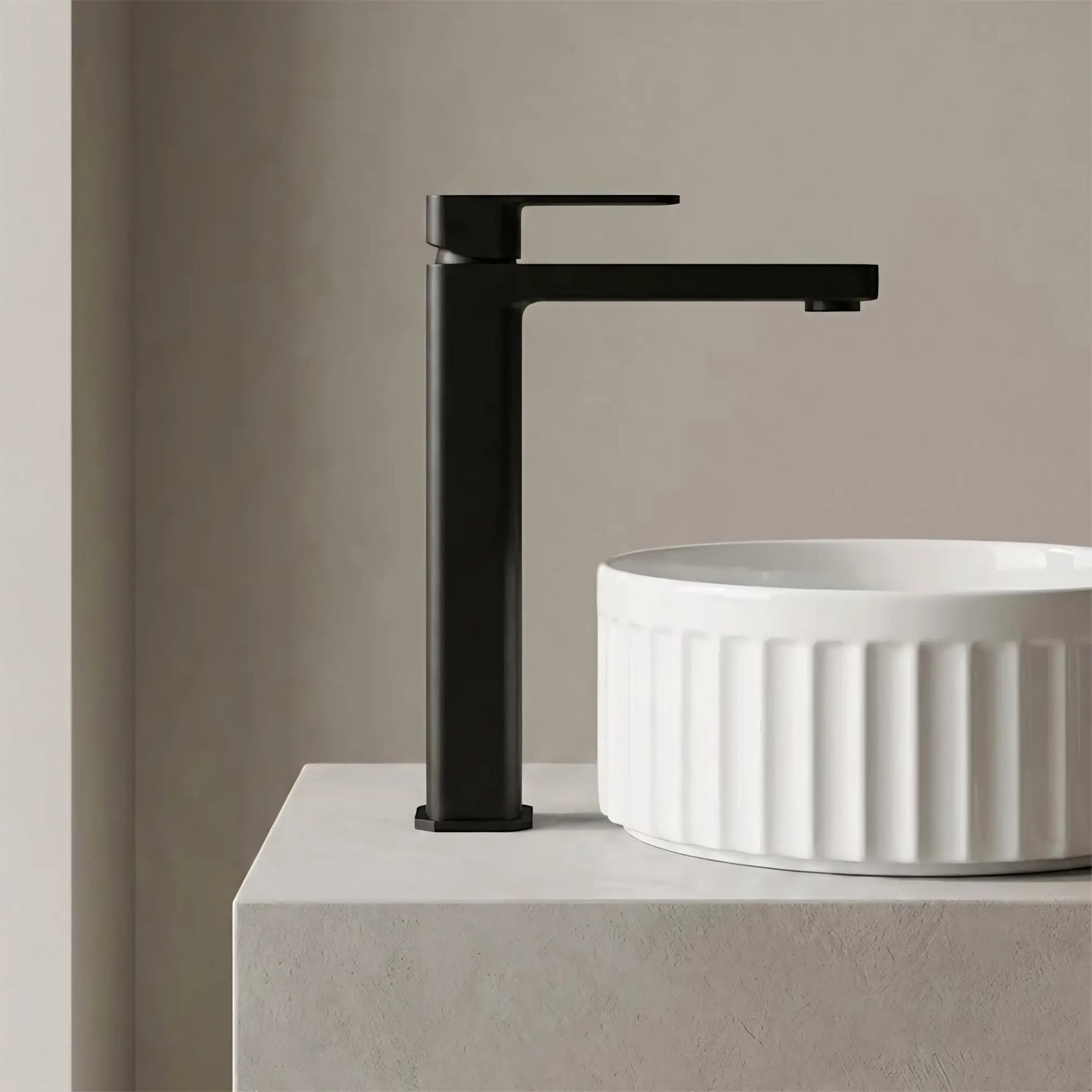Hohe Waschtischarmatur – Einhebelmischer in Mattschwarz