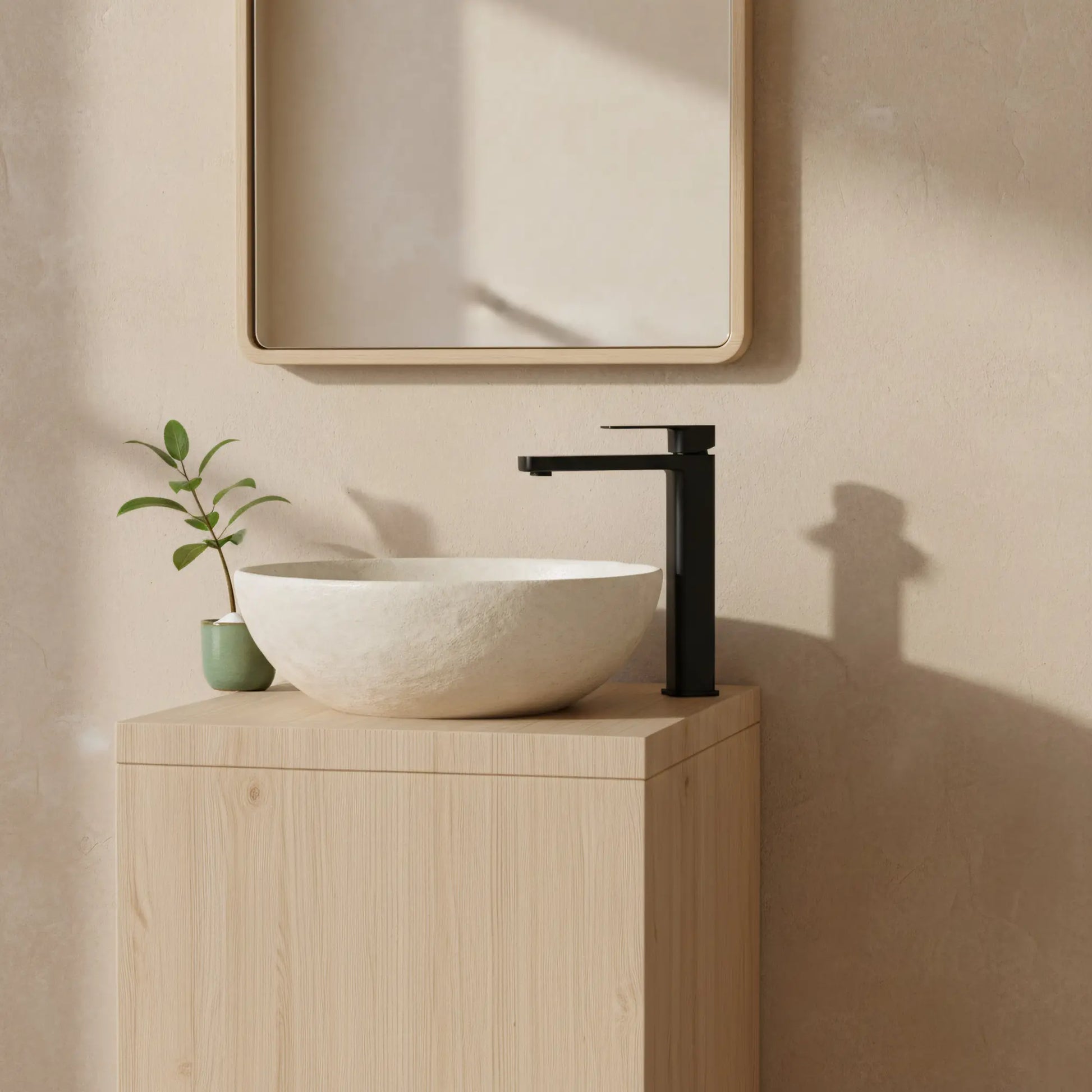 Diese hohe Waschtischarmatur überzeugt durch ihre schlanke, moderne Silhouette, die speziell für Aufsatzwaschbecken konzipiert ist. Die klare, geometrische Form mit flachem Auslauf unterstreicht zeitgemäße Badkonzepte, während die mattschwarze Oberfläche dem Waschplatz einen markanten und eleganten Charakter verleiht.