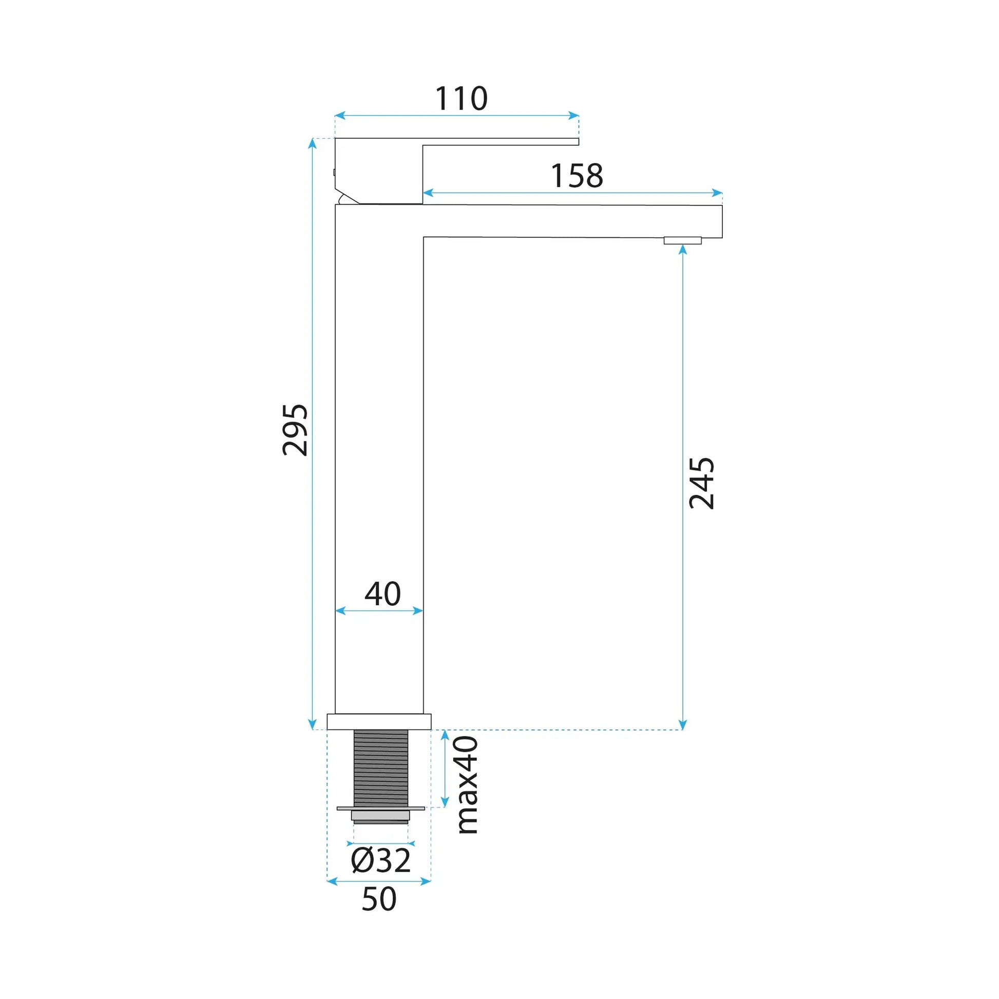 • Hohe Standarmatur – ideal für Aufsatzwaschbecken