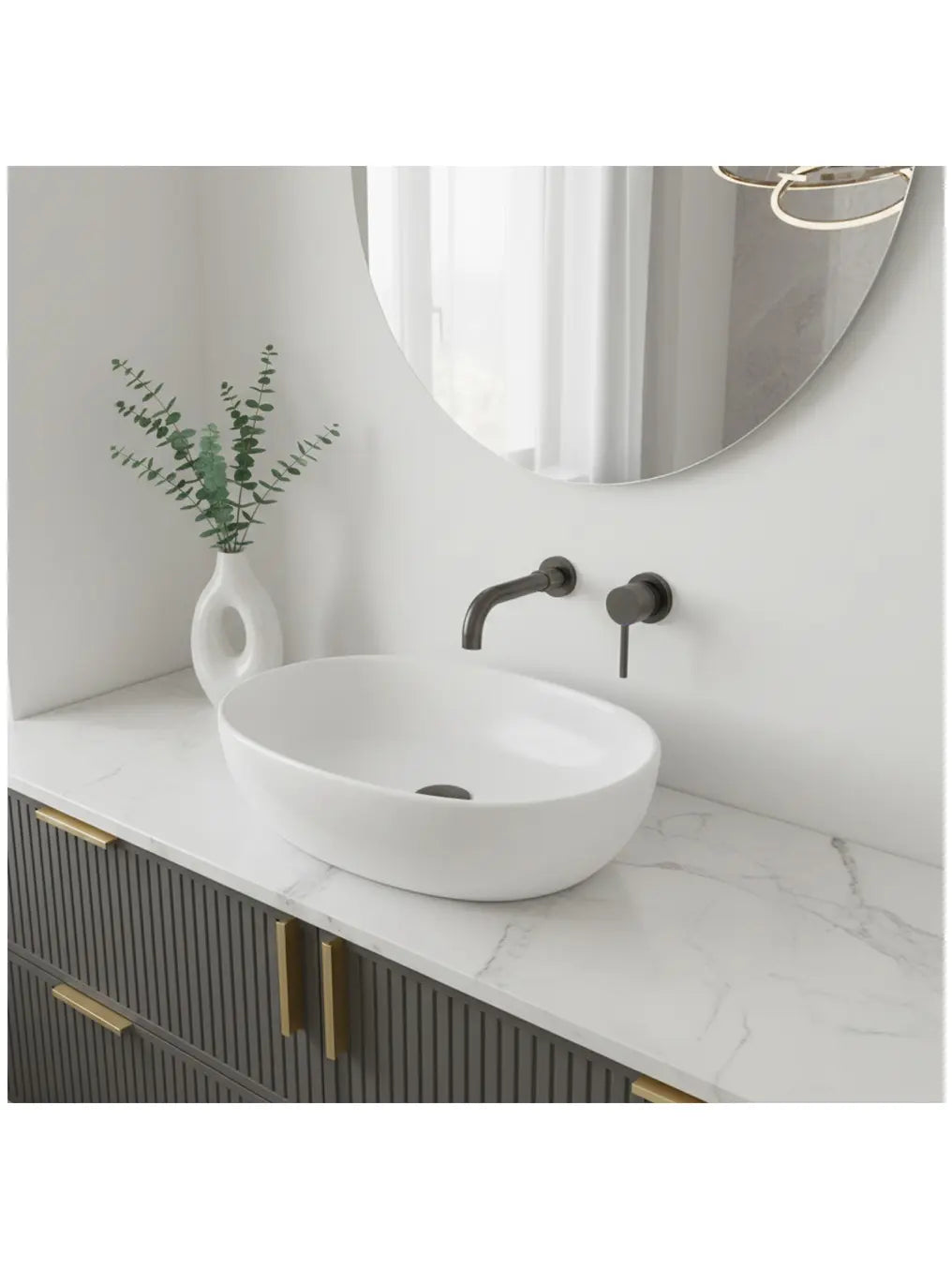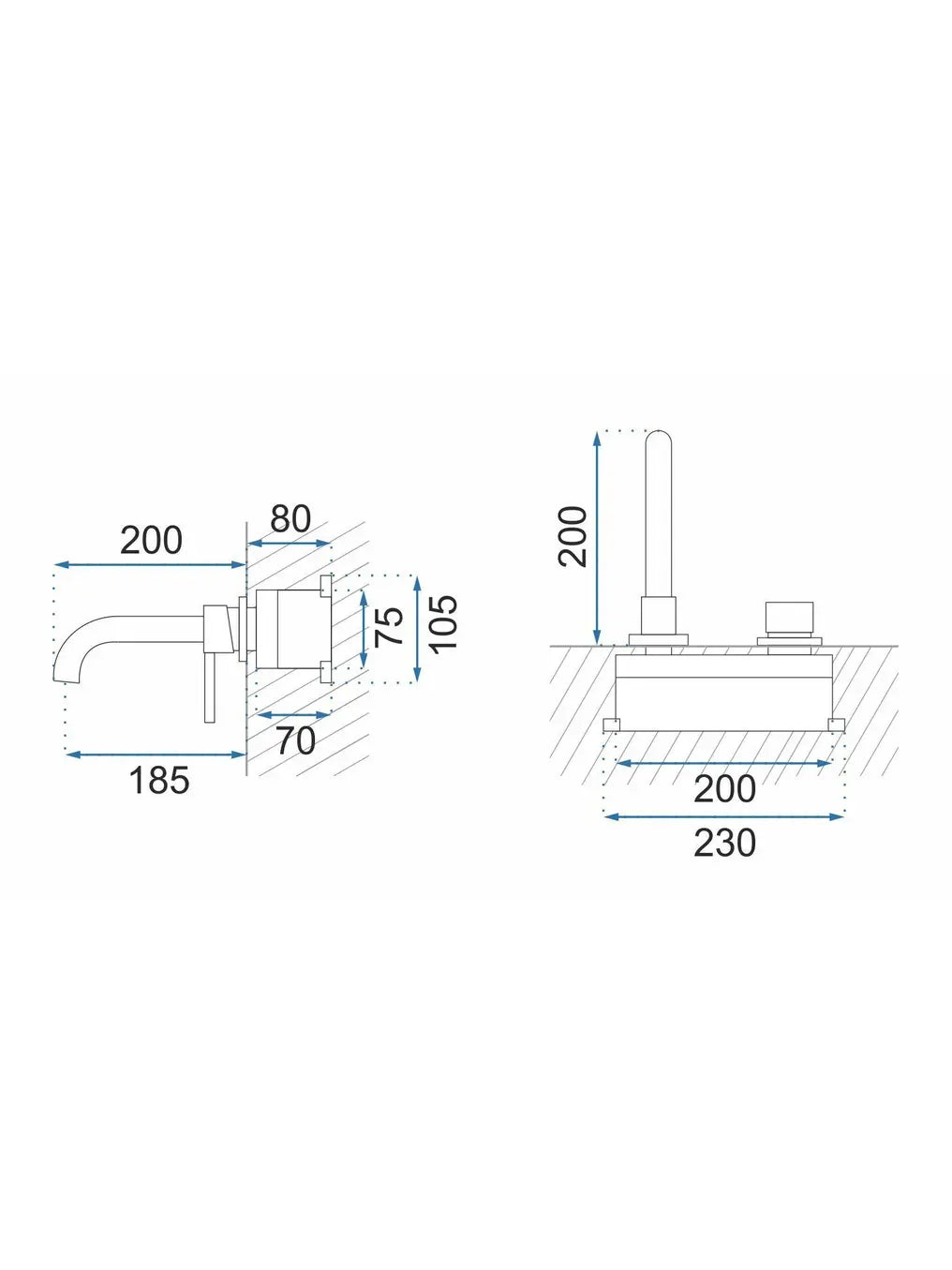 Diese moderne Unterputz-Waschtischarmatur in Titan Matt überzeugt durch ihr elegantes Design und den verlängerten Wandauslauf, der ideal für größere Waschtische oder Aufsatzwaschbecken geeignet ist.