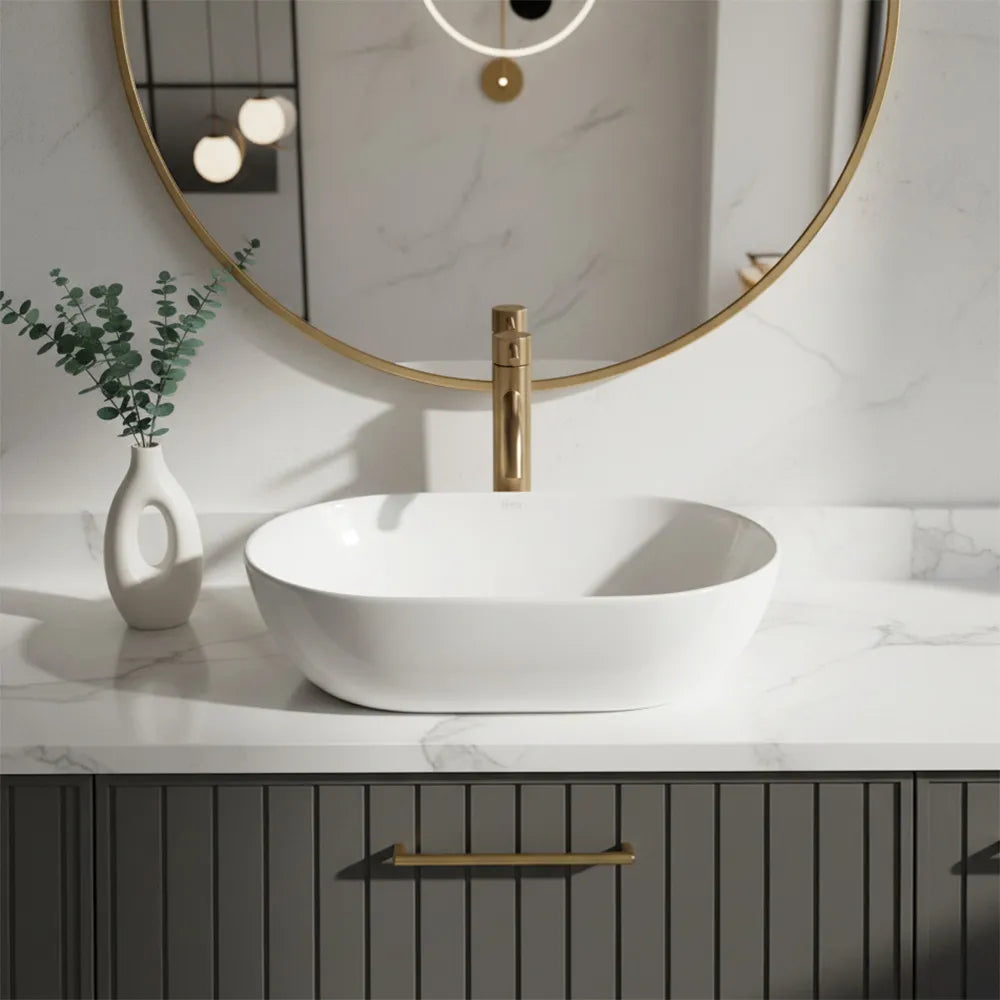 • Ovales Aufsatzwaschbecken in glänzendem Weiß