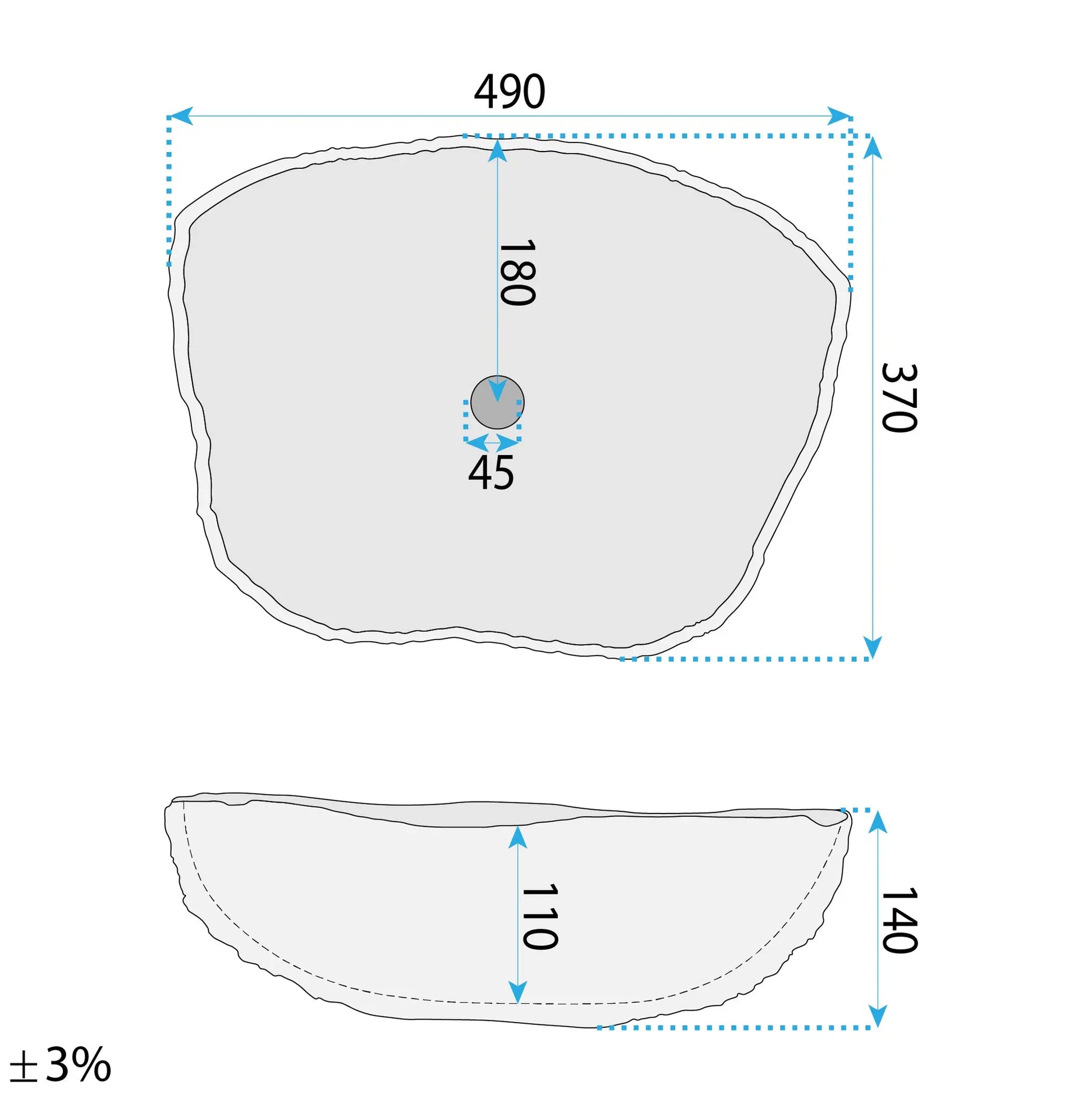 • Asymmetrisches Aufsatzwaschbecken mit rauer, mattierter Steinstruktur