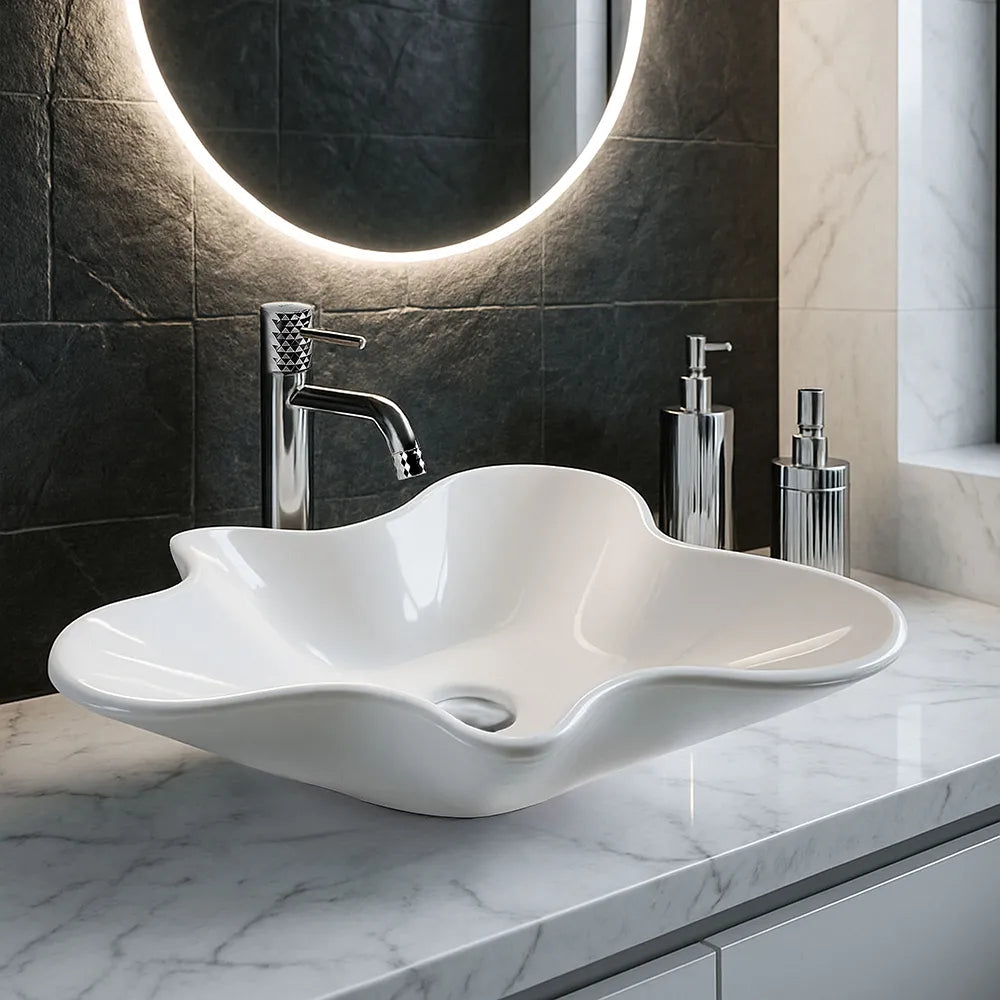 Das Aufsatzwaschbecken Izolda besticht durch seine organische Muschelform, die Leichtigkeit und Natürlichkeit ins Badezimmer bringt. Mit seinen geschwungenen Linien erinnert es an die Formen der Natur und wird so zu einem echten Highlight im Raum.