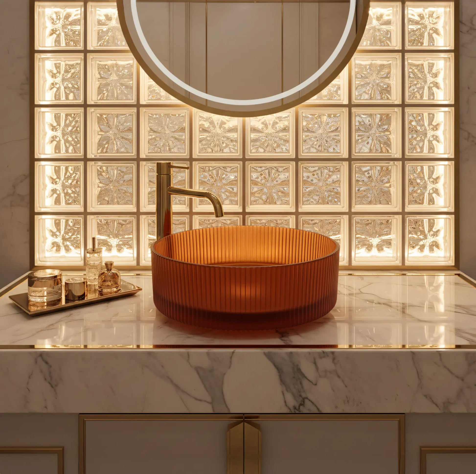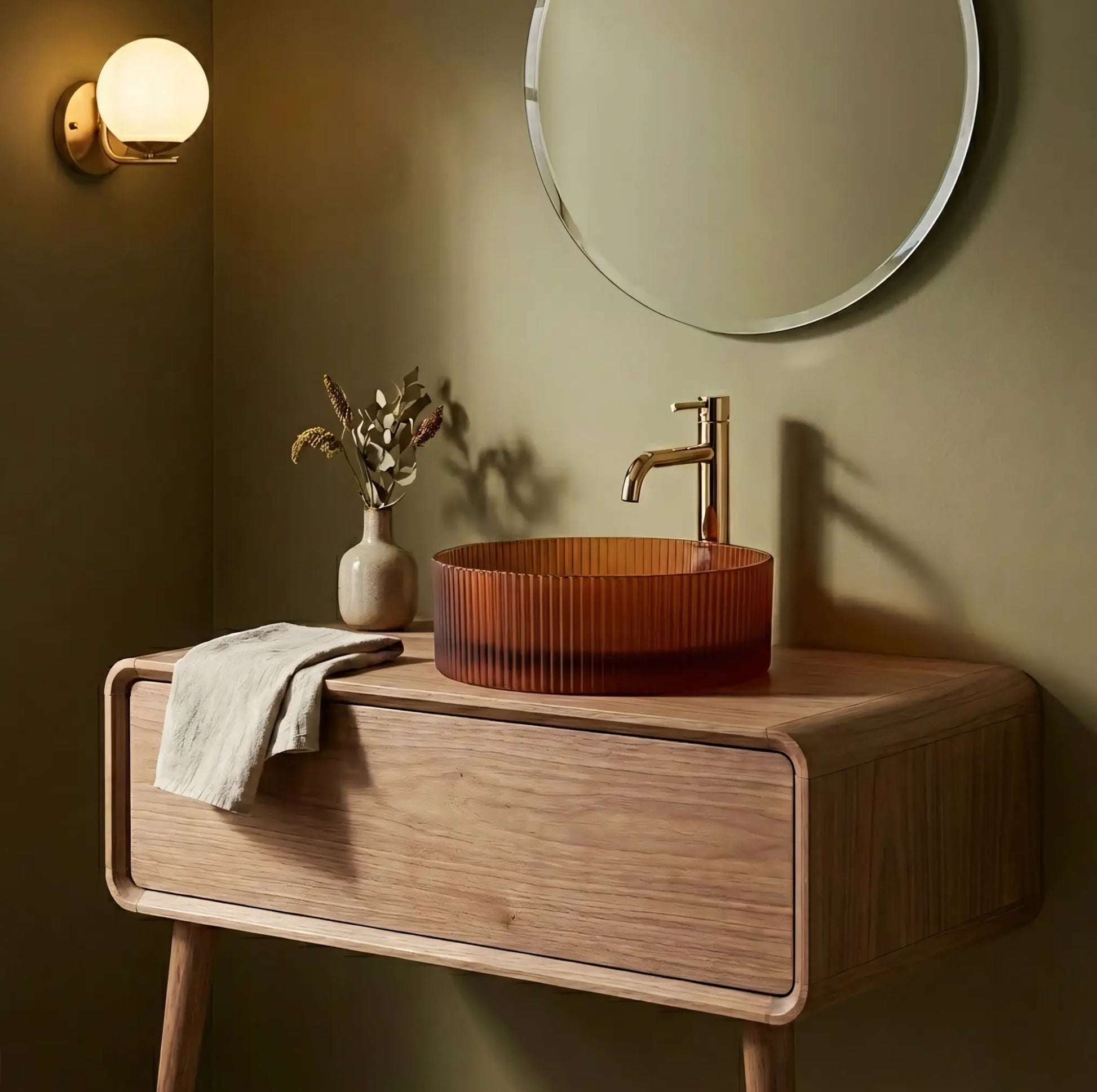 Aufsatzwaschbecken rund aus Glas - bernsteinfarbenes Braun für stilvolle Bäder
