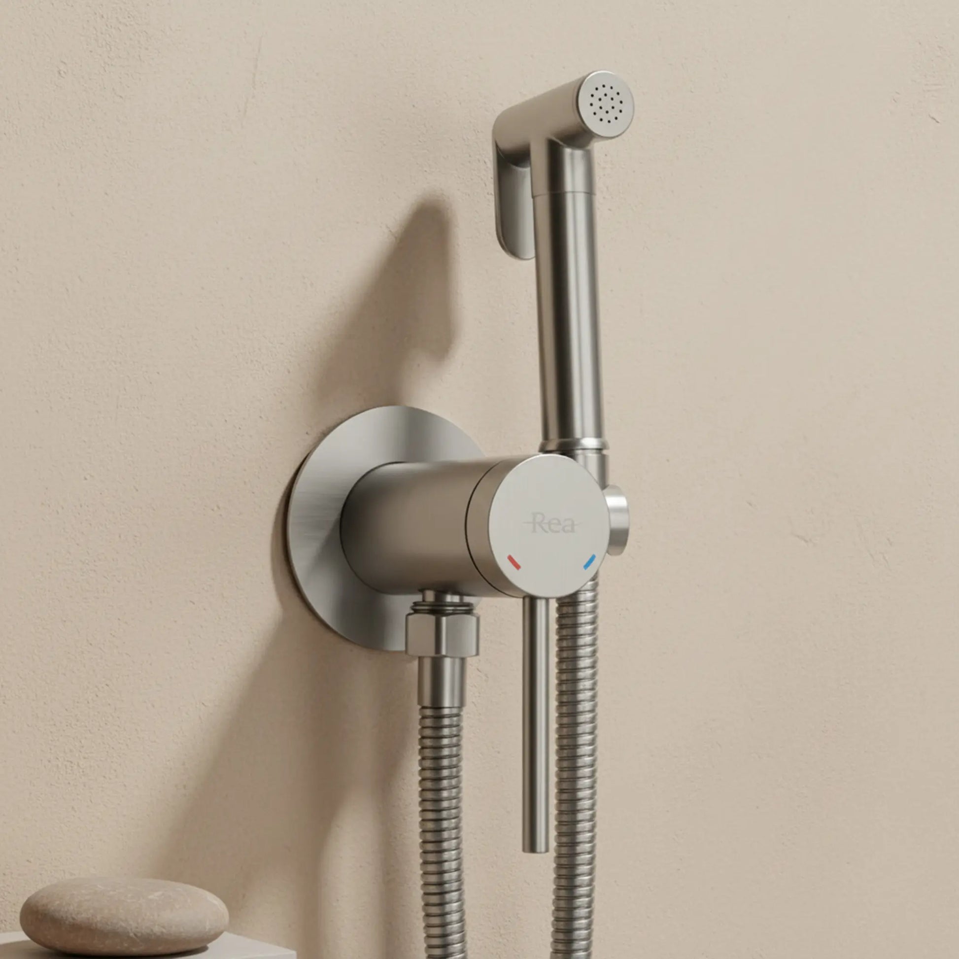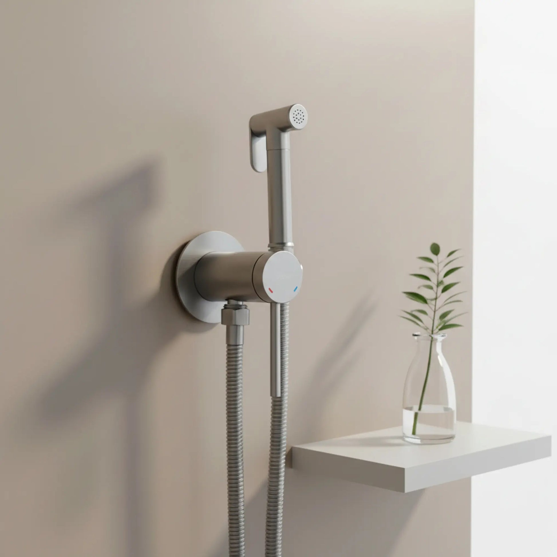 Das Handbidet mit flexiblem Schlauch bietet eine komfortable und hygienische Lösung für die Intimpflege und eignet sich ideal als Ergänzung zum WC oder als Alternative zum klassischen Bidet. Die Wandmontage sorgt für ein aufgeräumtes Erscheinungsbild und spart Platz im Bad.