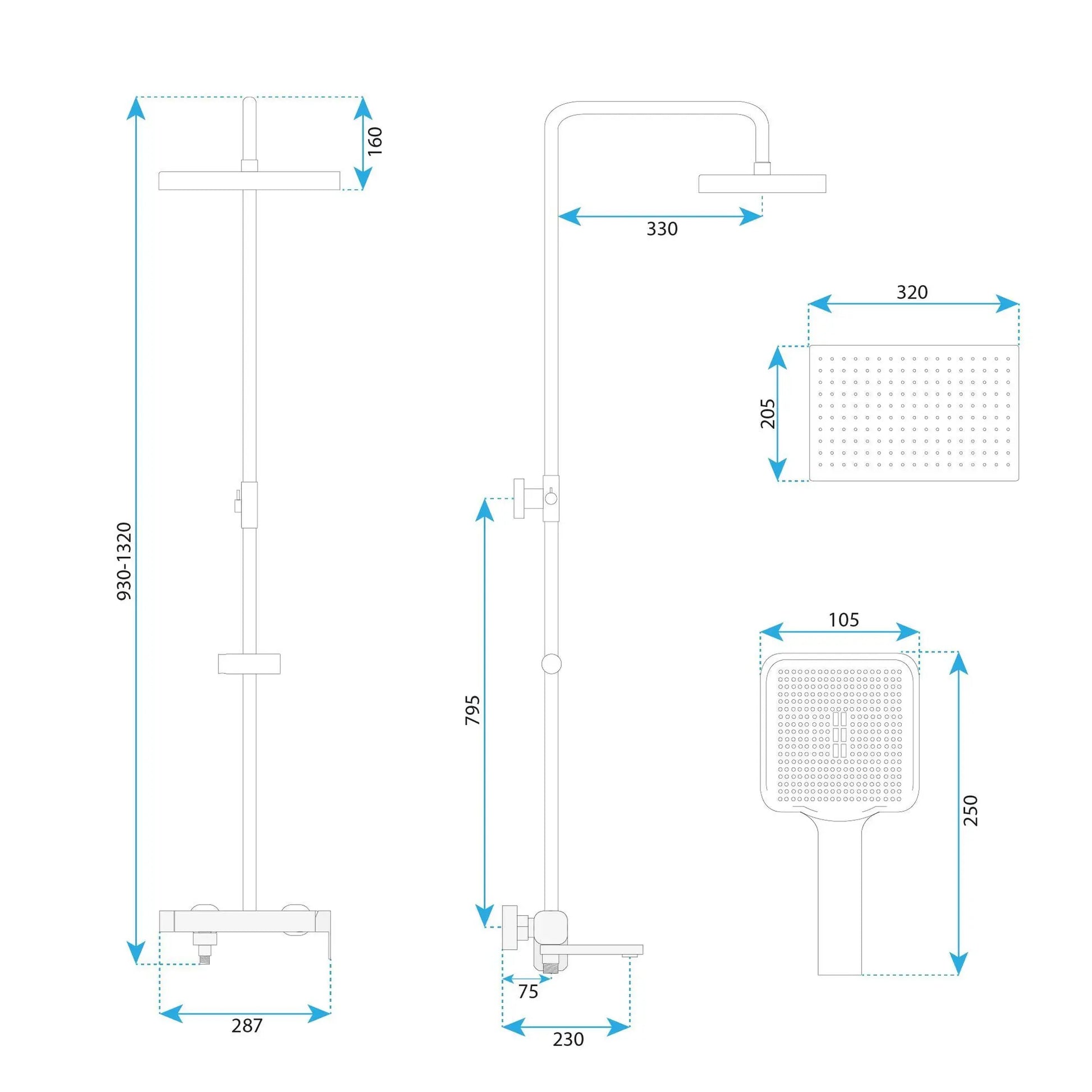 • Höhenverstellbar: 930–1320 mm