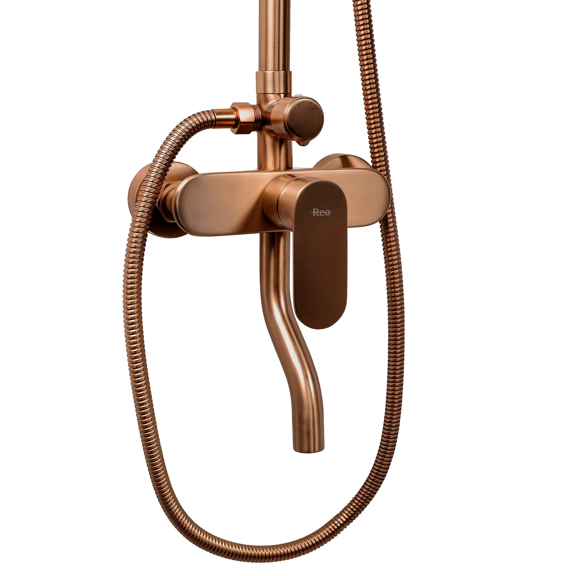Duschsystem Kupfer Matt – Aufputz-Duschsäule mit Kopf- & Handbrause und Wannenauslauf