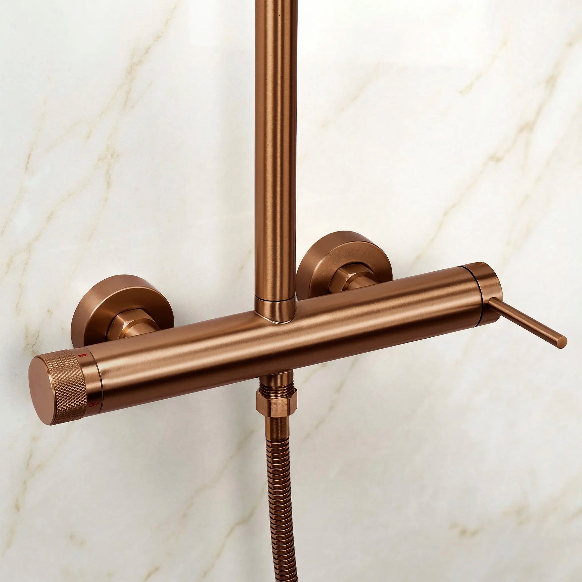 Duschsystem mit Regendusche & Handbrause – Kupfer matt, Thermostat