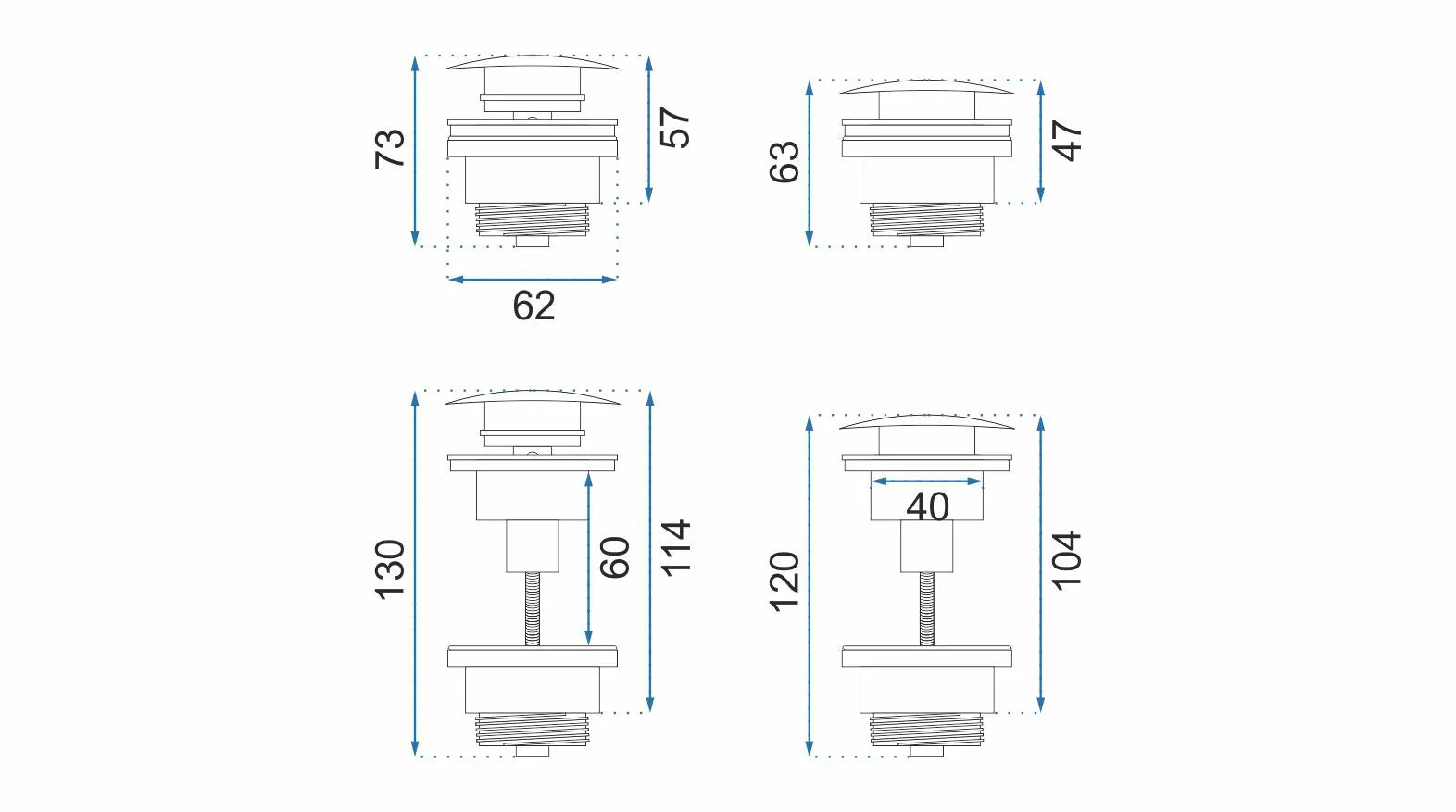 • Push-Open / Click-Clack Ablaufventil in Gold Matt (für Becken ohne Überlauf)