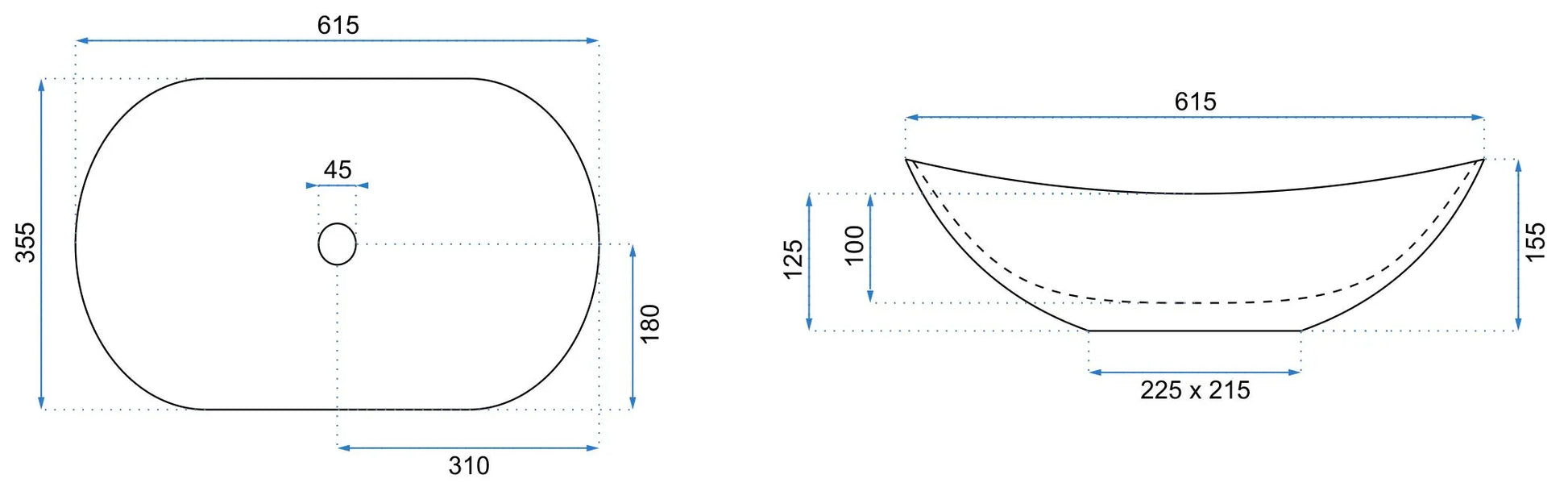 • Material Becken: Keramik, matte Oberfläche