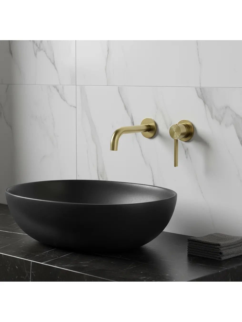 Diese exklusive Unterputz-Waschtischarmatur in edlem Gold Matt verleiht jedem Badezimmer ein minimalistisches und luxuriöses Ambiente. Durch die Montage in der Wand wirkt das Design besonders klar und aufgeräumt – perfekt für moderne Badezimmer und hochwertige Waschtischlösungen.