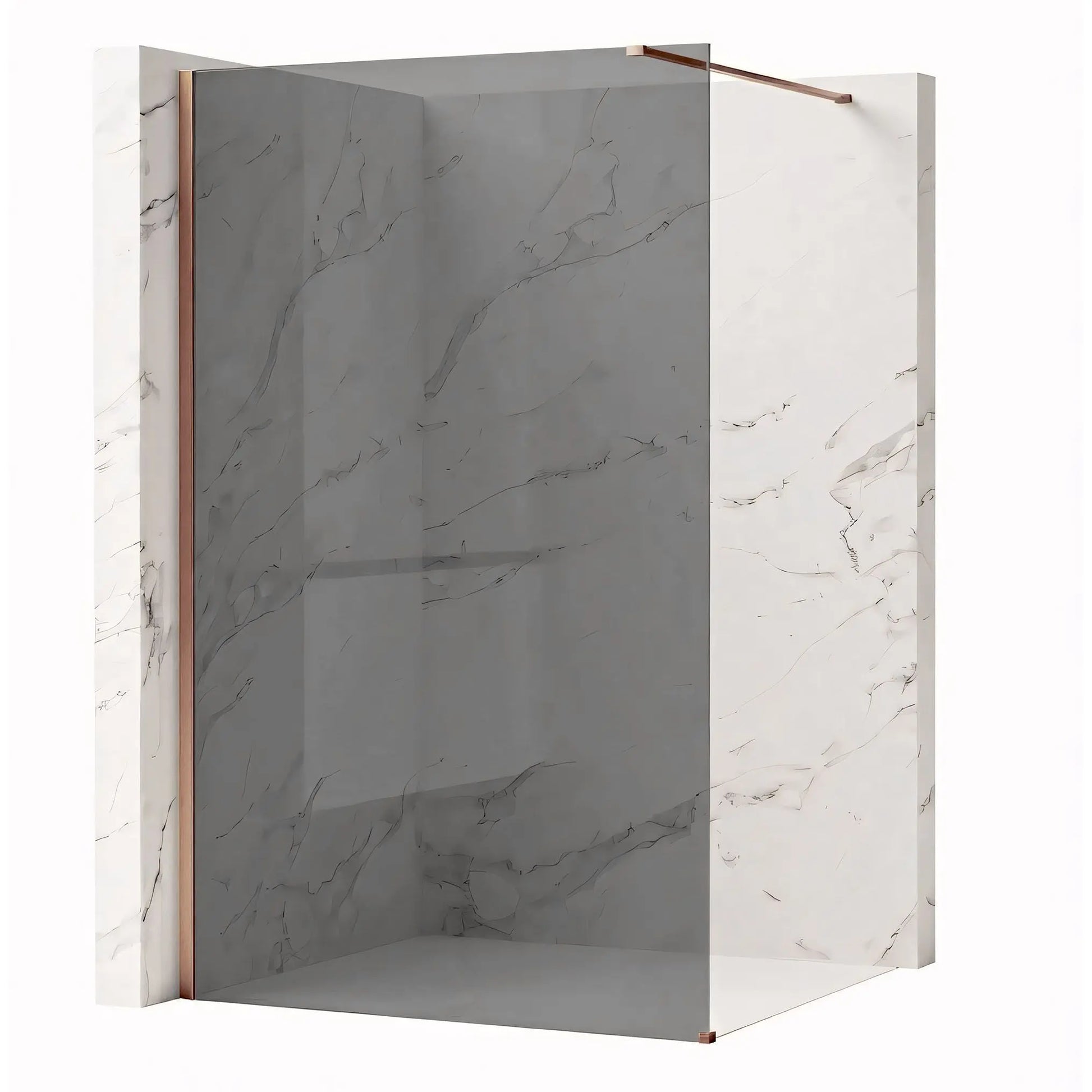 Walk-In Duschwand – Grau getöntes Glas mit Profil in Kupfer matt