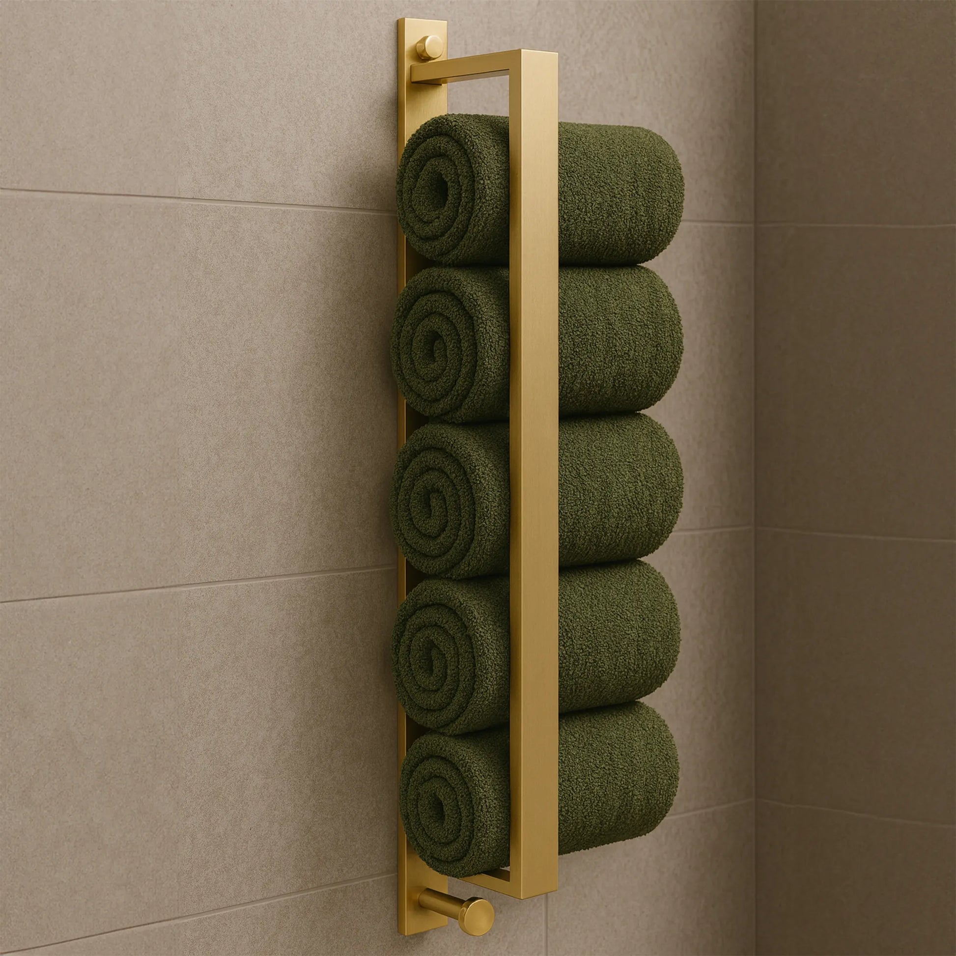 Verleihen Sie Ihrem Badezimmer einen Hauch von Luxus mit unserem Handtuchhalter in Gold Matt für die Wandmontage. Das moderne, geometrische Design sorgt nicht nur für einen eleganten Blickfang, sondern auch für optimale Funktionalität.