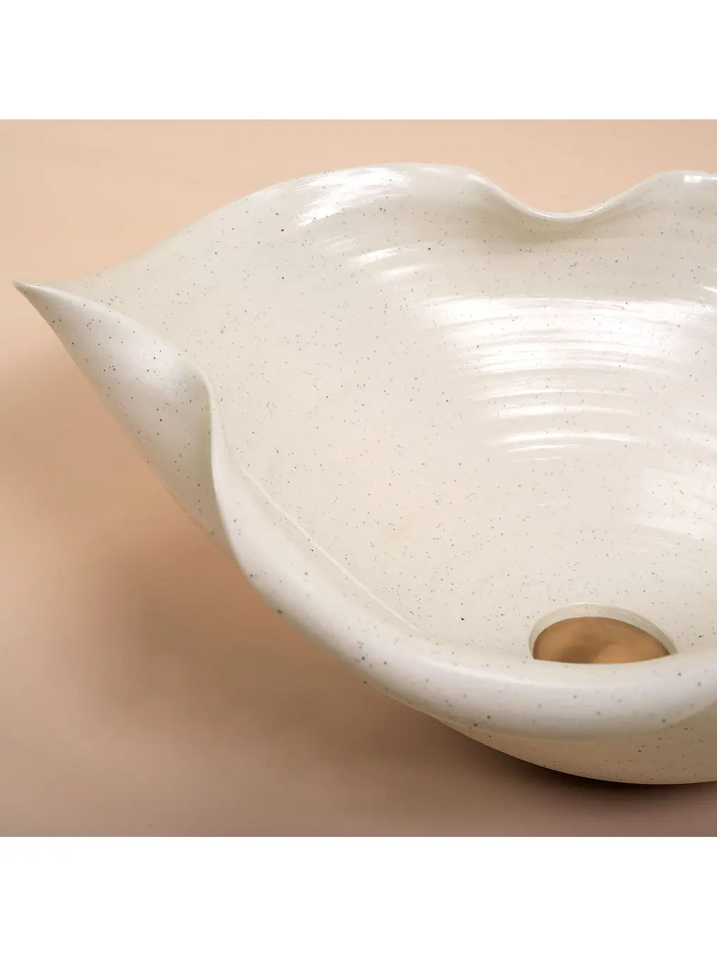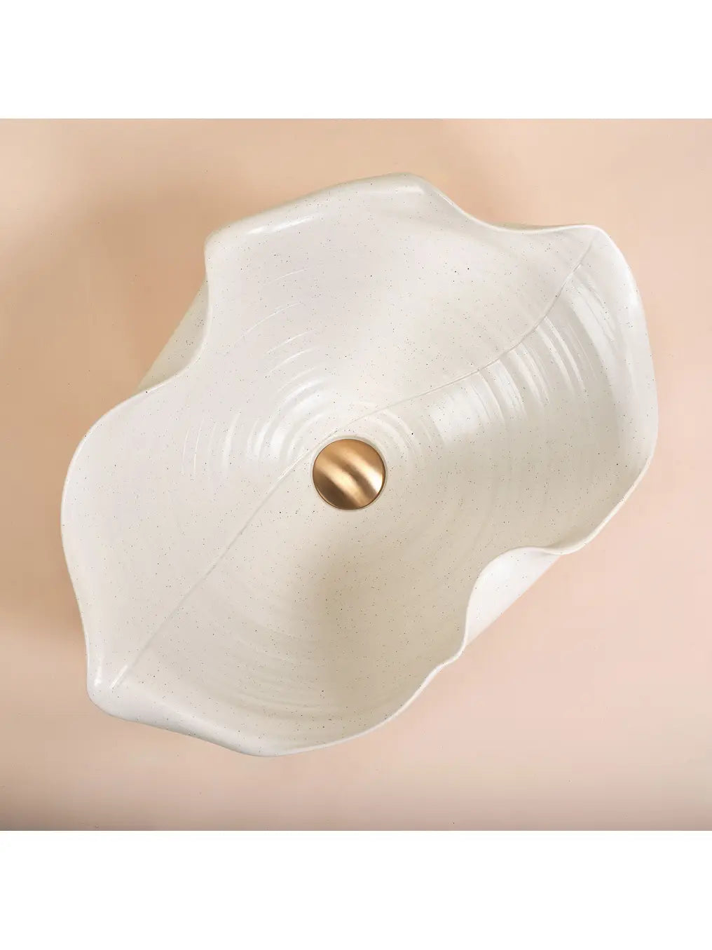 Hergestellt aus hochwertiger, langlebiger Keramik bietet das Becken eine widerstandsfähige, pflegeleichte Oberfläche. Die cremefarbene, leicht gesprenkelte Optik sorgt für ein warmes, natürliches Ambiente und setzt elegante Akzente – ideal für hochwertige Interior-Projekte.